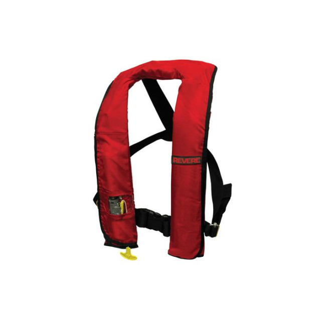 Revere's ComfortMax Inflatable PFDs offer manual and automatic inflation systems, combining comfort with the convenience of instant CO2 inflation technology. They have dual waist adjustment straps for a perfect fit, and a D-ring for connecting a kill-switch lanyard for safety. The heavy-duty 420 Denier nylon fabric covering has a clear status window with a view of the inflation system status indicator.